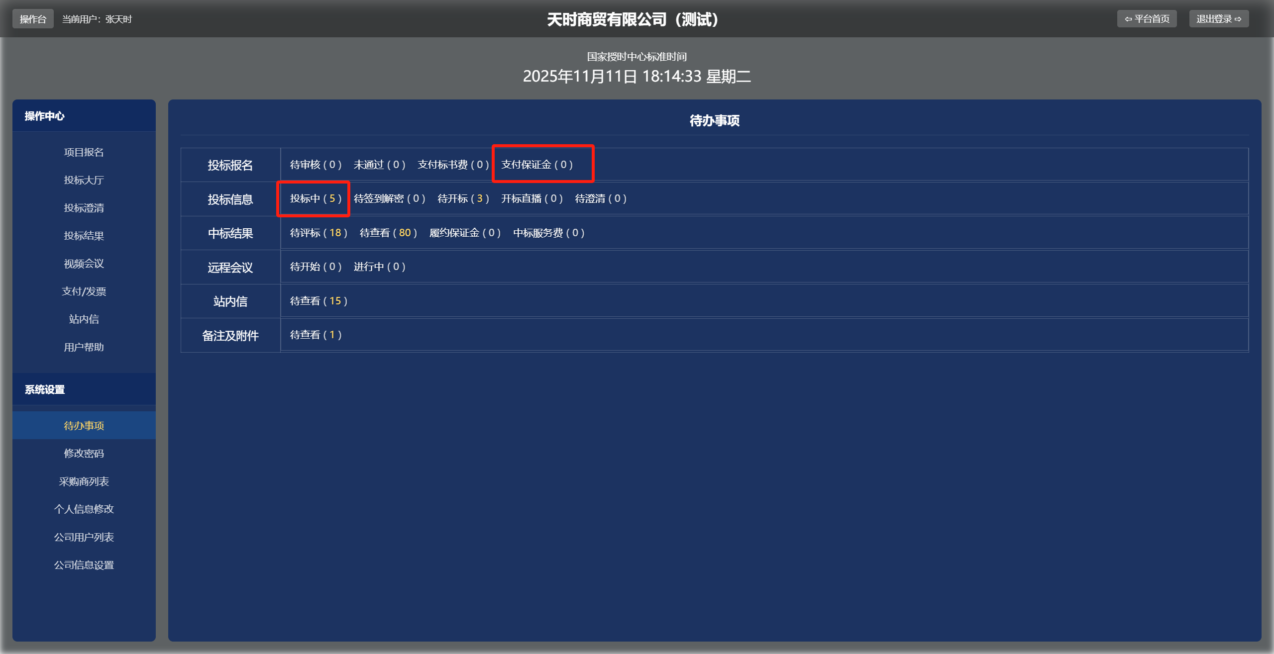 如果采购人发布的是邀请项目,则供应商会收到短信和邮件通知。供应商在平台首页选择<投标人登录>后,在待办事项中会看到待办事项中有“支付保证金”和“投标中”的项目。供应商无需报名,只须完成保证金的支付即可参与竞价/投标。